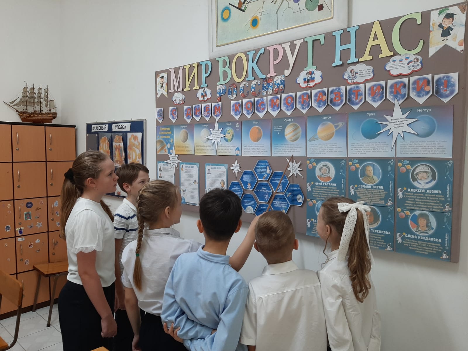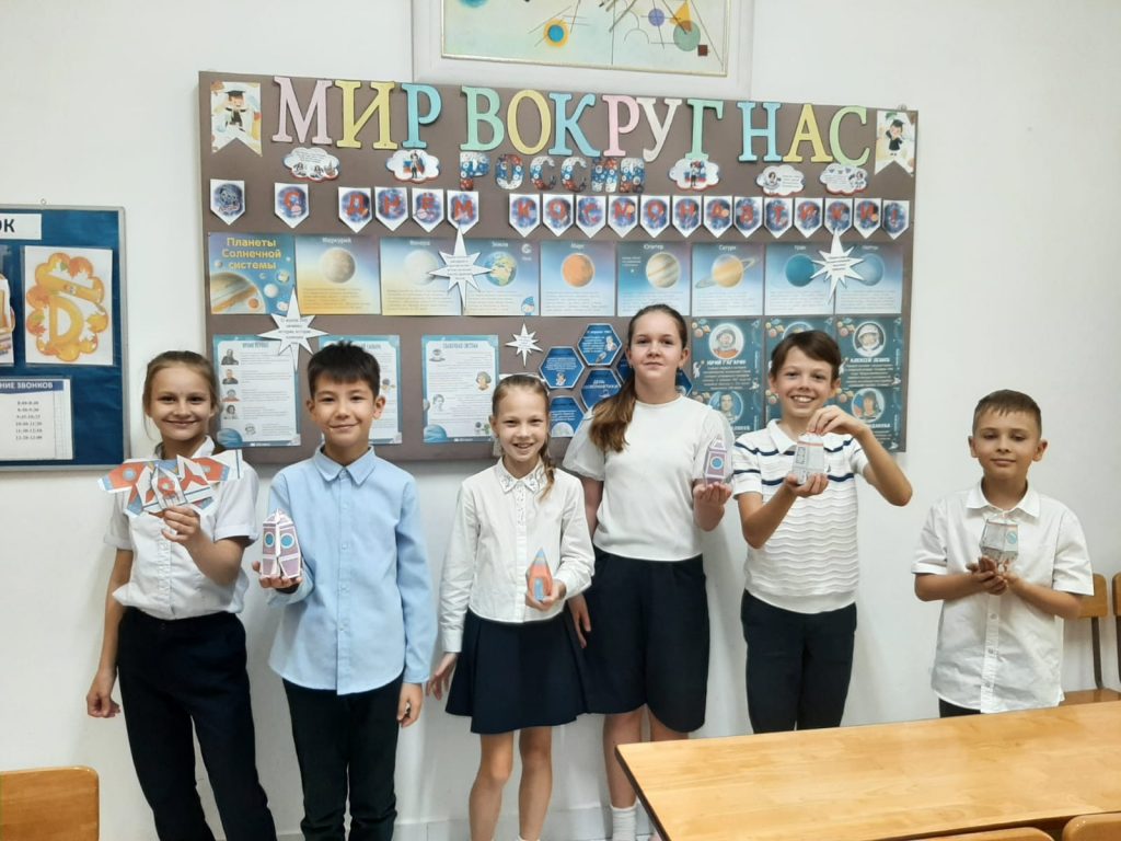 В этом году с 6 по 12 апреля стартовала первая в истории России Неделя космоса, приуроченная к 65-летию первого полёта человека в космос. Учащиеся нашей школы активно включились в работу. На этой неделе они написали «Письмо космонавту» с напутственными пожеланиями и интересующими их вопросами. Сконструировали космические корабли по собственным чертежам. С помощью кистей и красок изобразили невероятную красоту космического пространства. Узнали о жизни и работе покорителей космоса, об истории современной и отечественной космонавтики. Интеллектуальные баталии развернулись во время разгадывания кроссвордов, ребусов и филвордов. Эта неделя стала для ребят настоящим открытием, полным новых и увлекательных сведений о бескрайнем космосе.